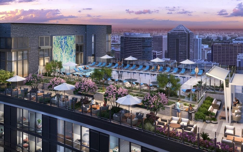 The West Development includes a 400,000 SF 23-story residential building with ground floor retail.